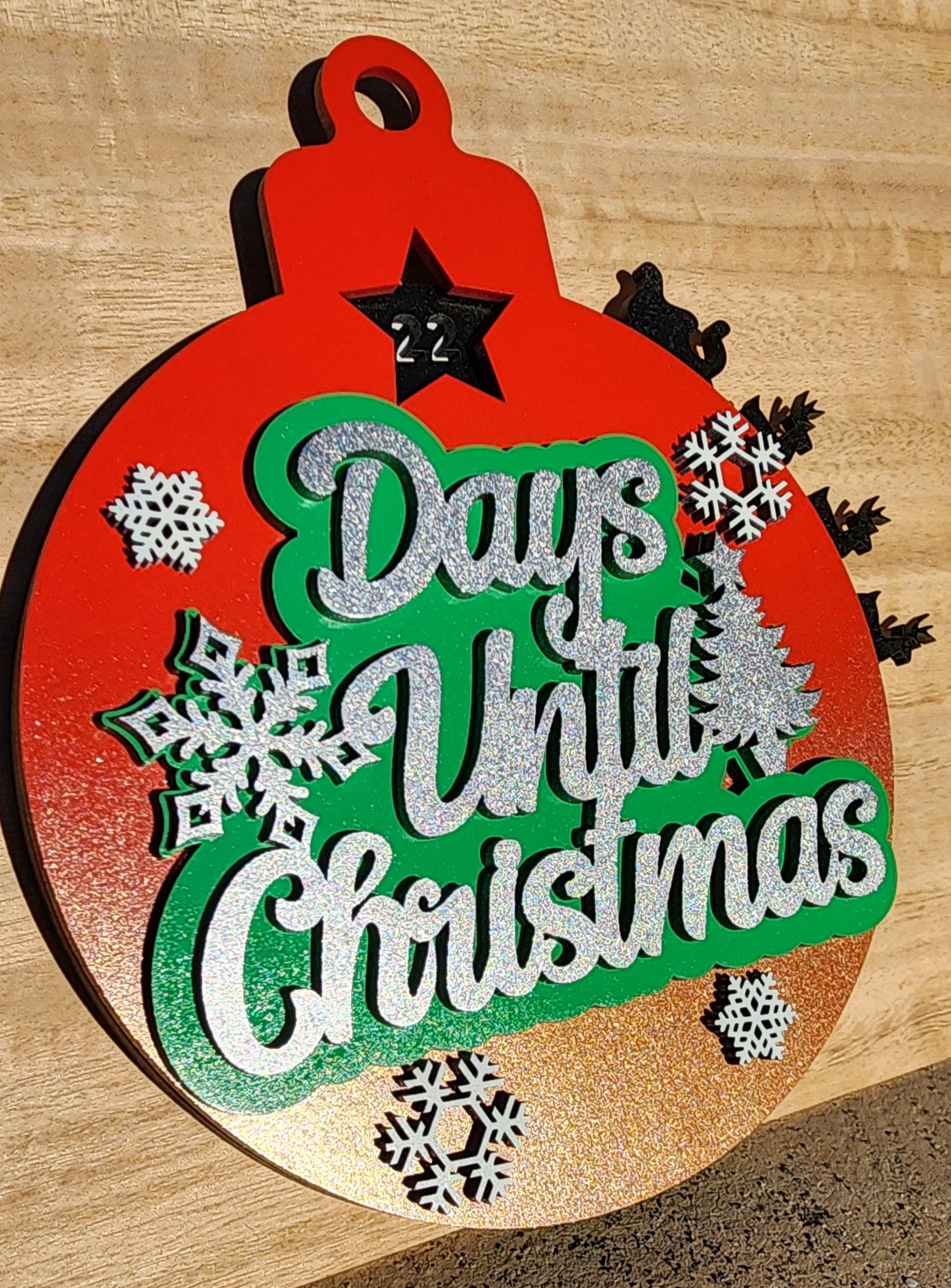 Count down the days until Christmas with this festive and colorful dial, it adds a touch of fun and charm to your holiday decor. The perfect way to get into the holiday spirit and keep track of the days leading up to Christmas. Available in a stained ply option, painted or a natural Blackwood and Bamboo composition.