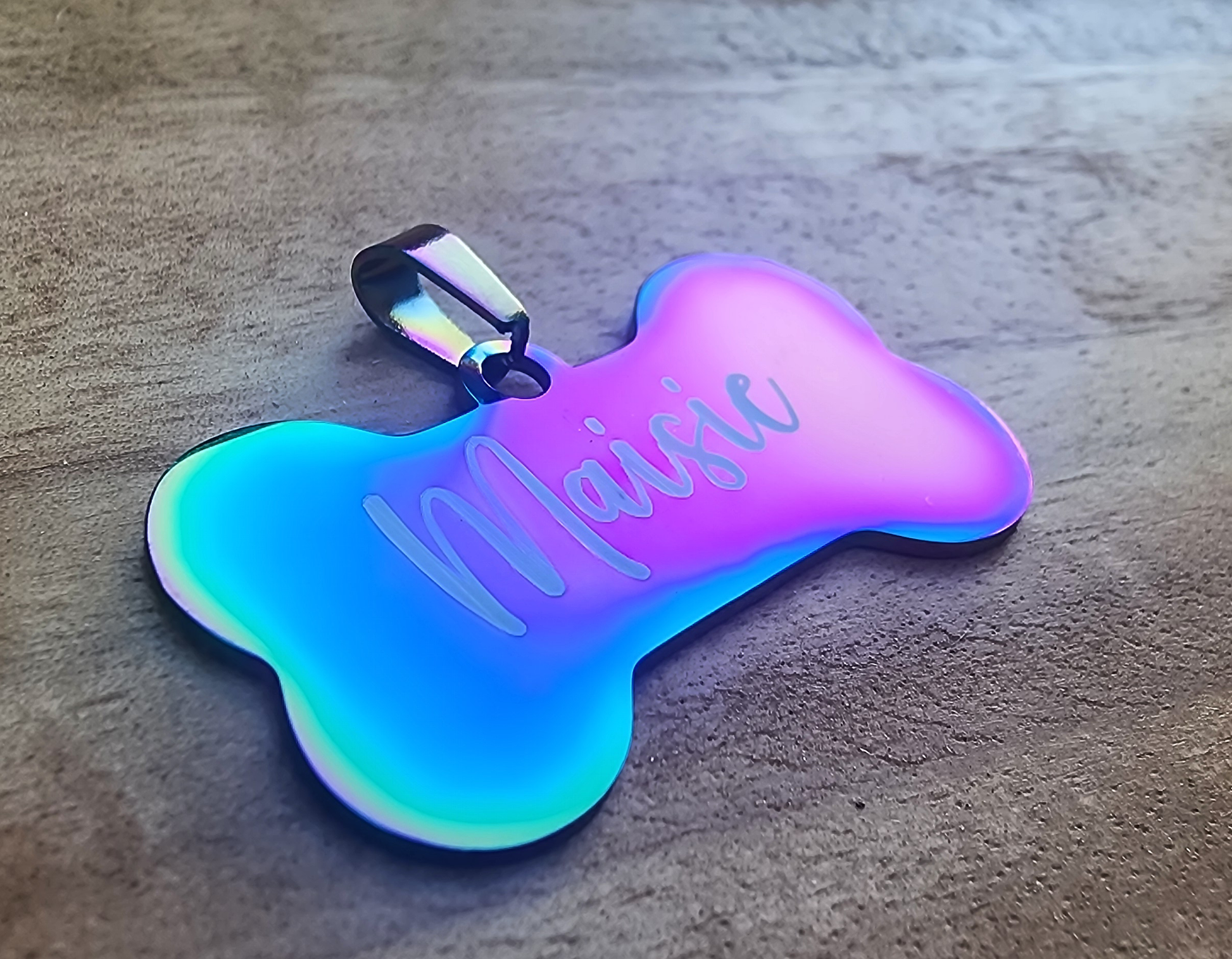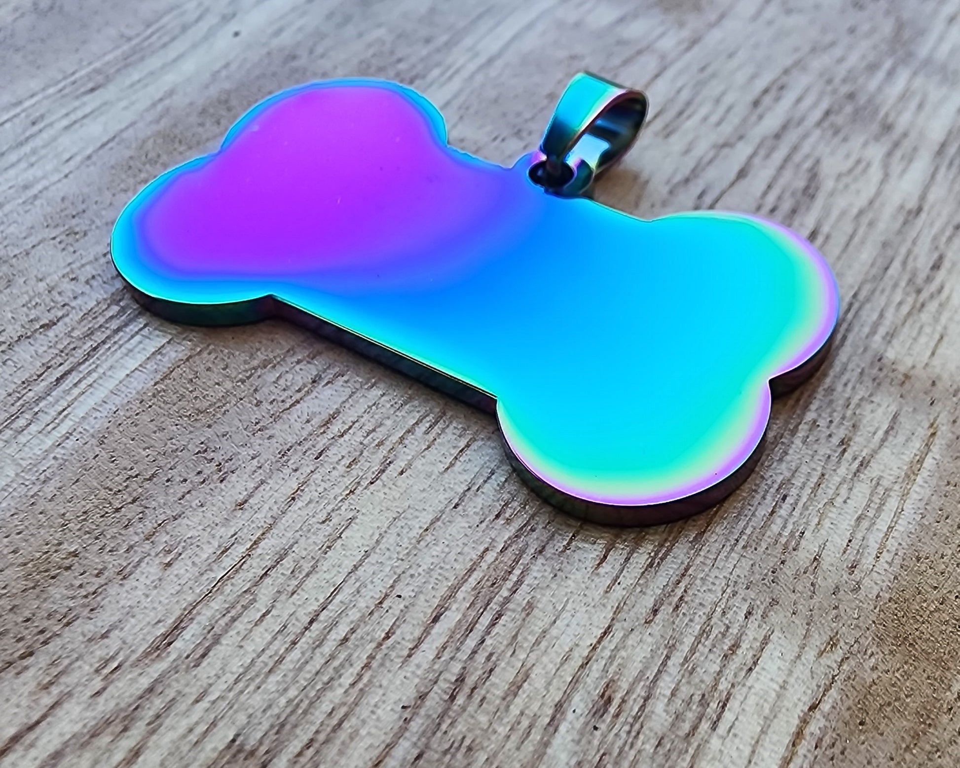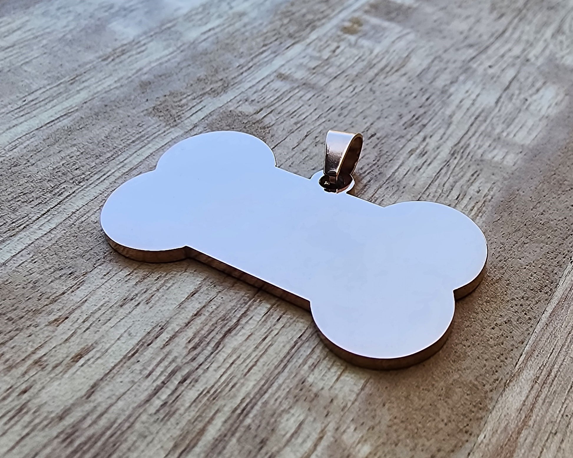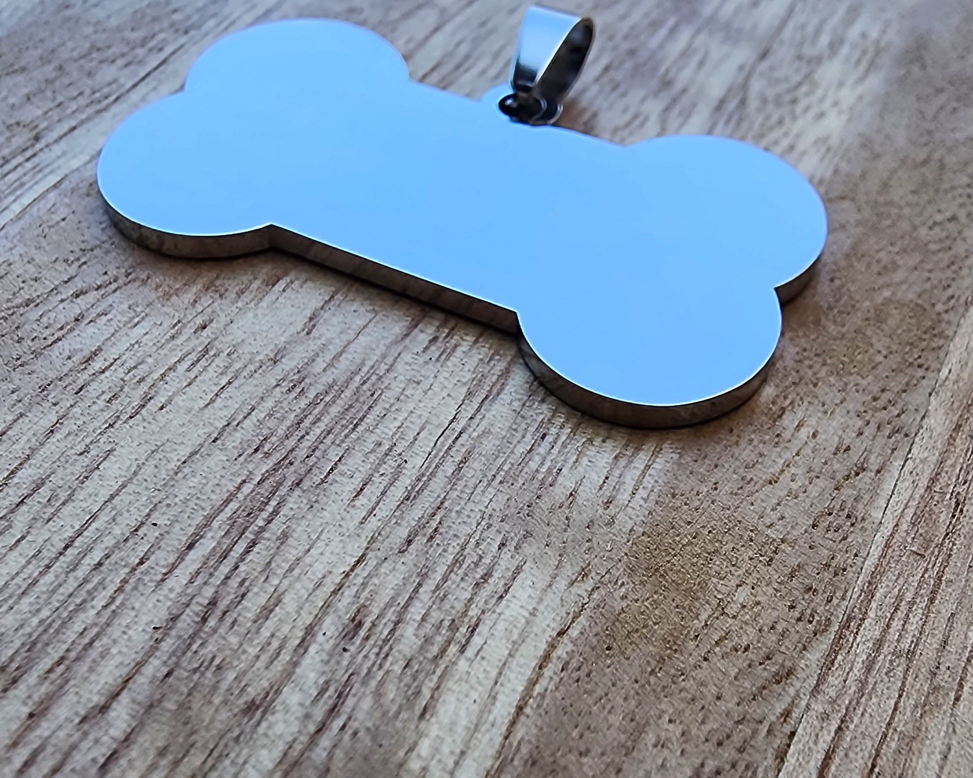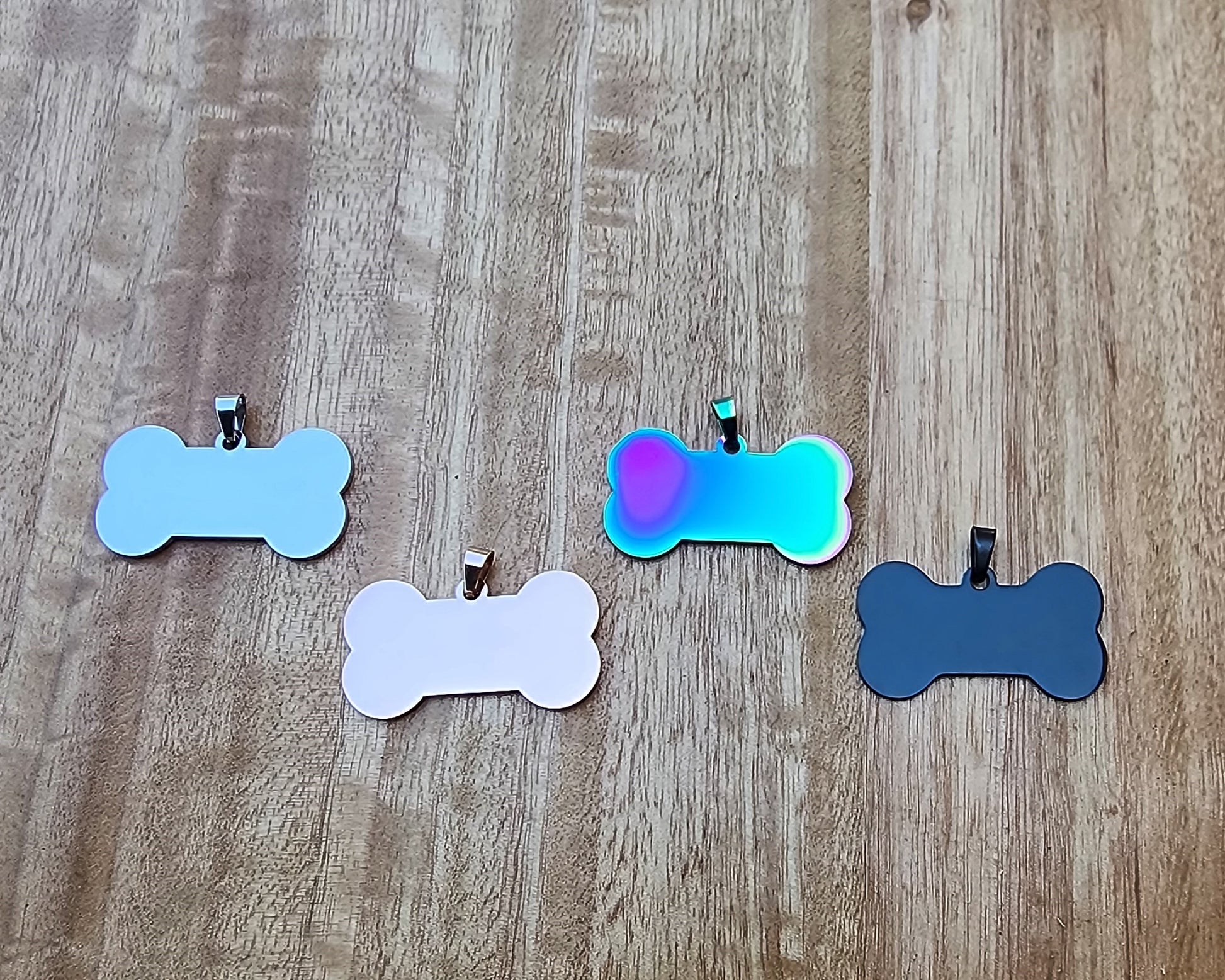 These dog I.D tags, available in a variety of colors, are shaped like bones and made of durable stainless steel. Ensure your furry friend's safety and add a touch of style to their collar. Expertly designed for easy identification and long-lasting use..