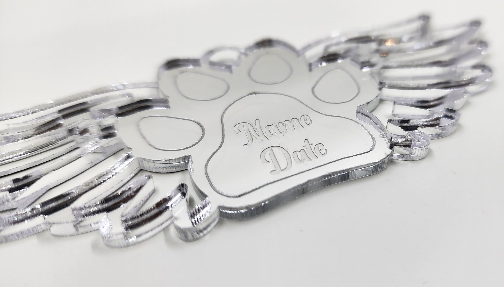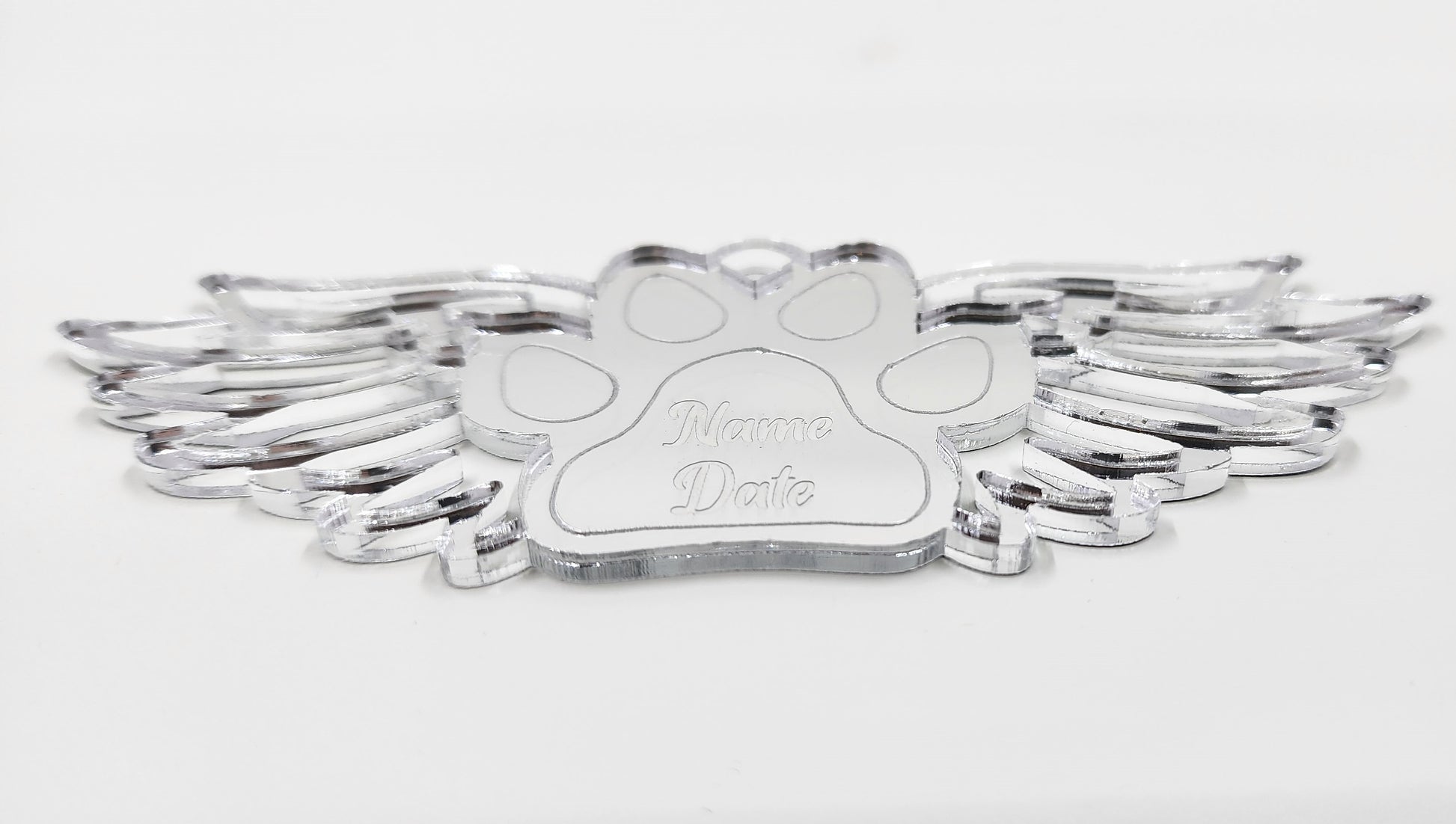 Honor your beloved pet with this elegant and personalised Pet Memorial Ornament. Laser cut and engraved from mirrored acrylic, this unique ornament is a meaningful way to remember your furry best friend. Let your loved one shine forever with this beautiful keepsake.