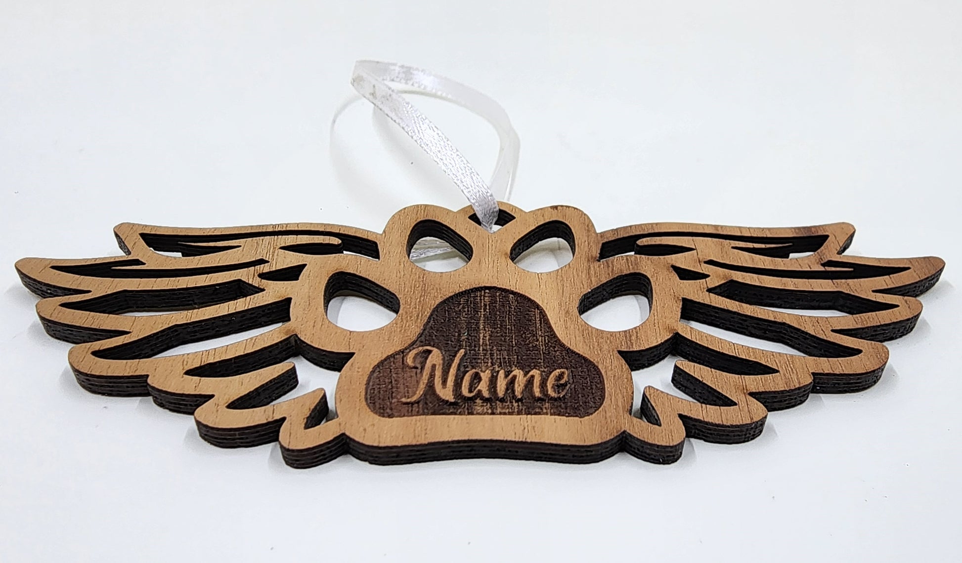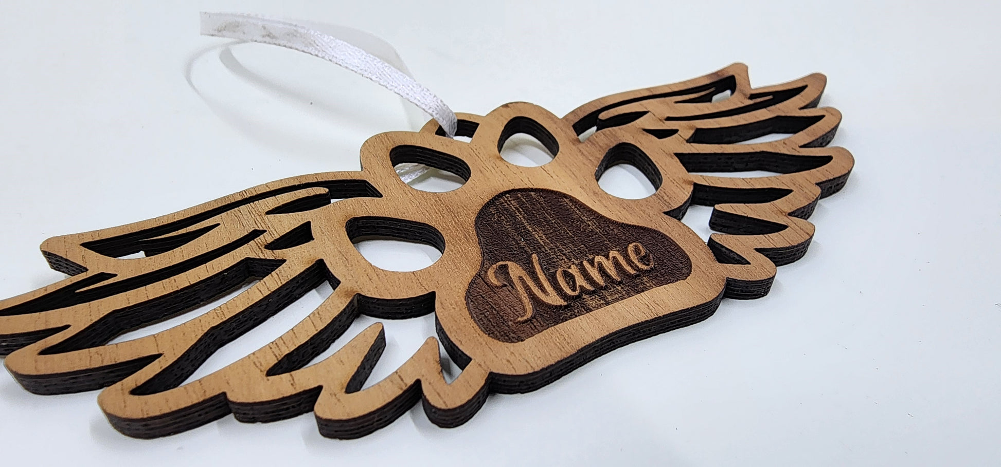 Personalized Pet Memorial Ornament crafted from Blackwood, laser cut and engraved, providing an attractive and enduring memory of your beloved pet.